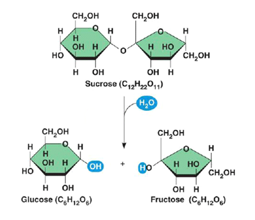 Turning Sucrose into Glucose and Fructose: this reaction is catalyzed by the enzyme sucrase.
