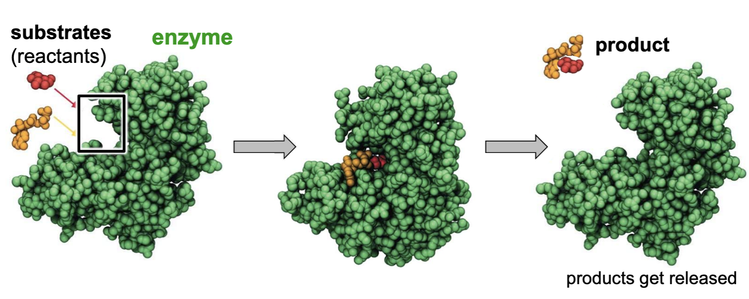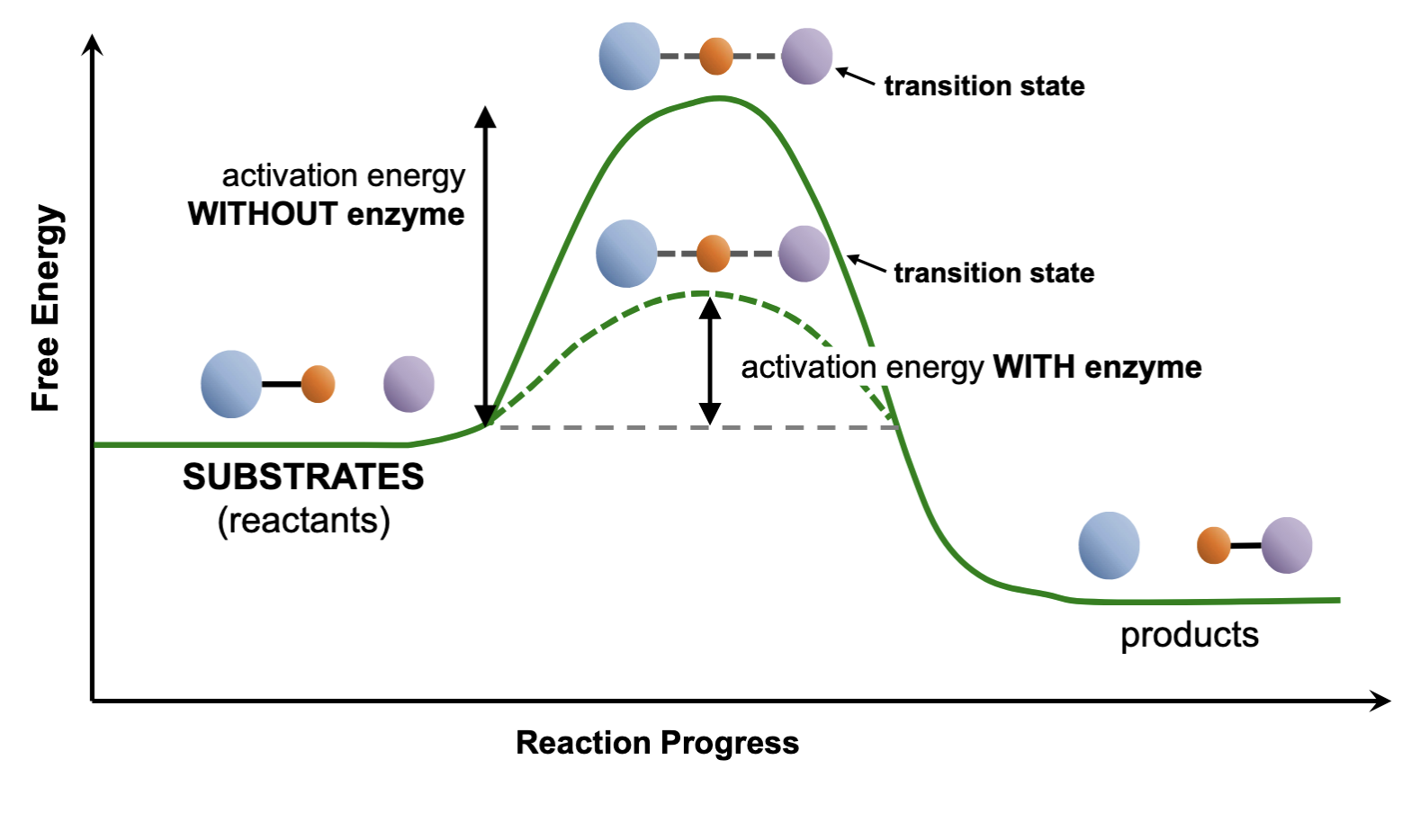 Enzymes increase the rate of chemical reactions by lowering the activation energy requires for a reaction to occur.
