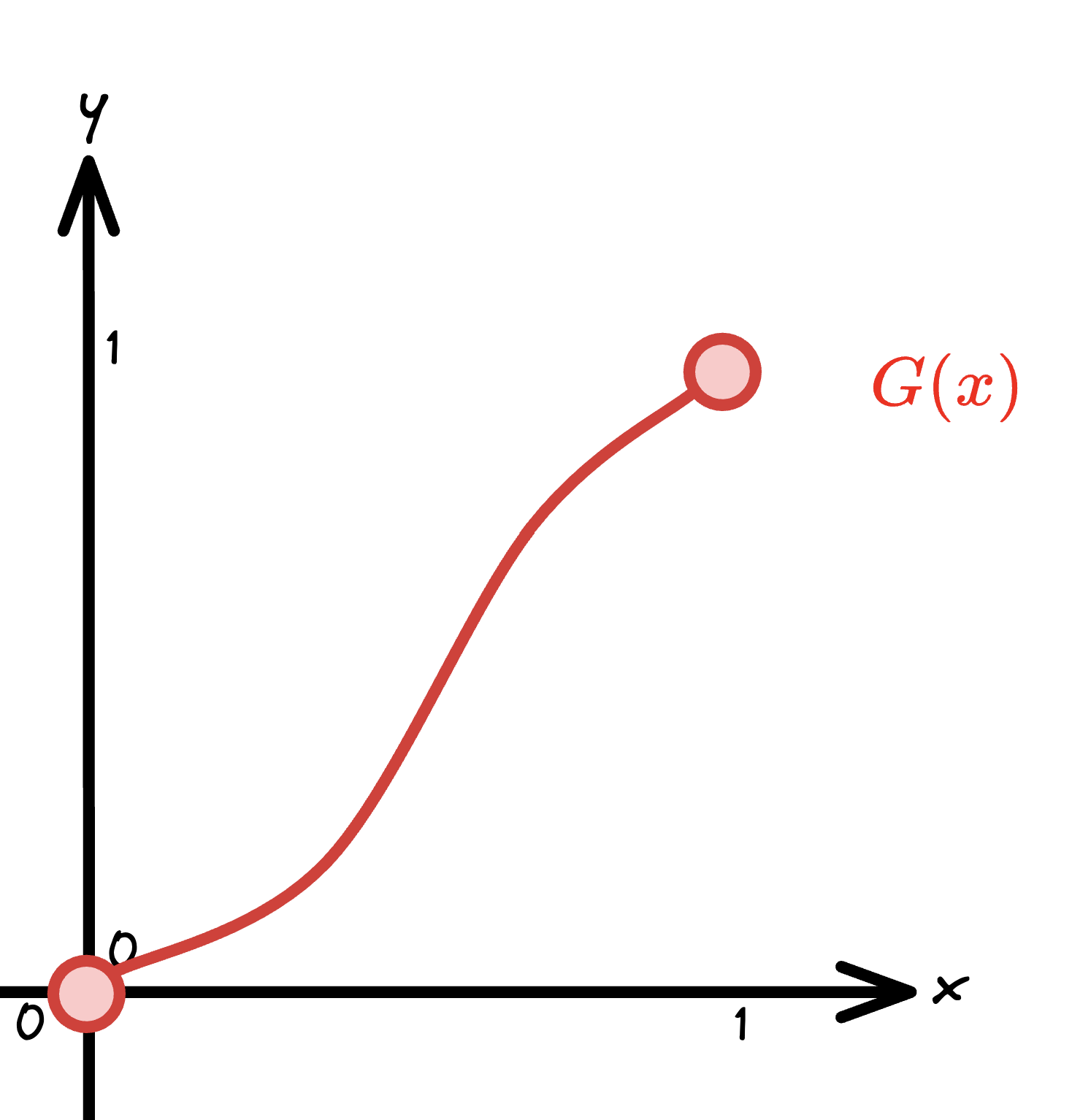 The blue line in the figure is the counterexample — a function where , so IVT doesn’t force a fixed point.