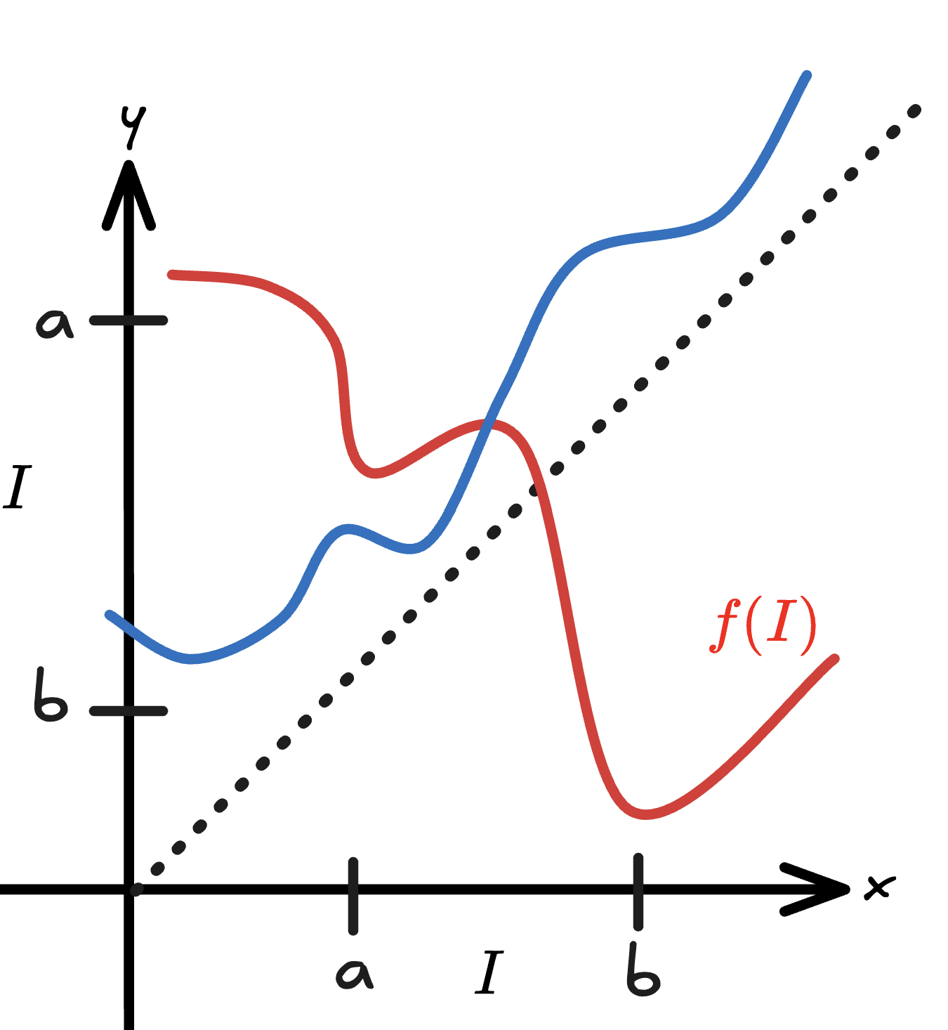 The covering condition matters because: if , then by the Intermediate Value Theorem there exists a point in that maps into . Covering arrows are existence guarantees for orbits.