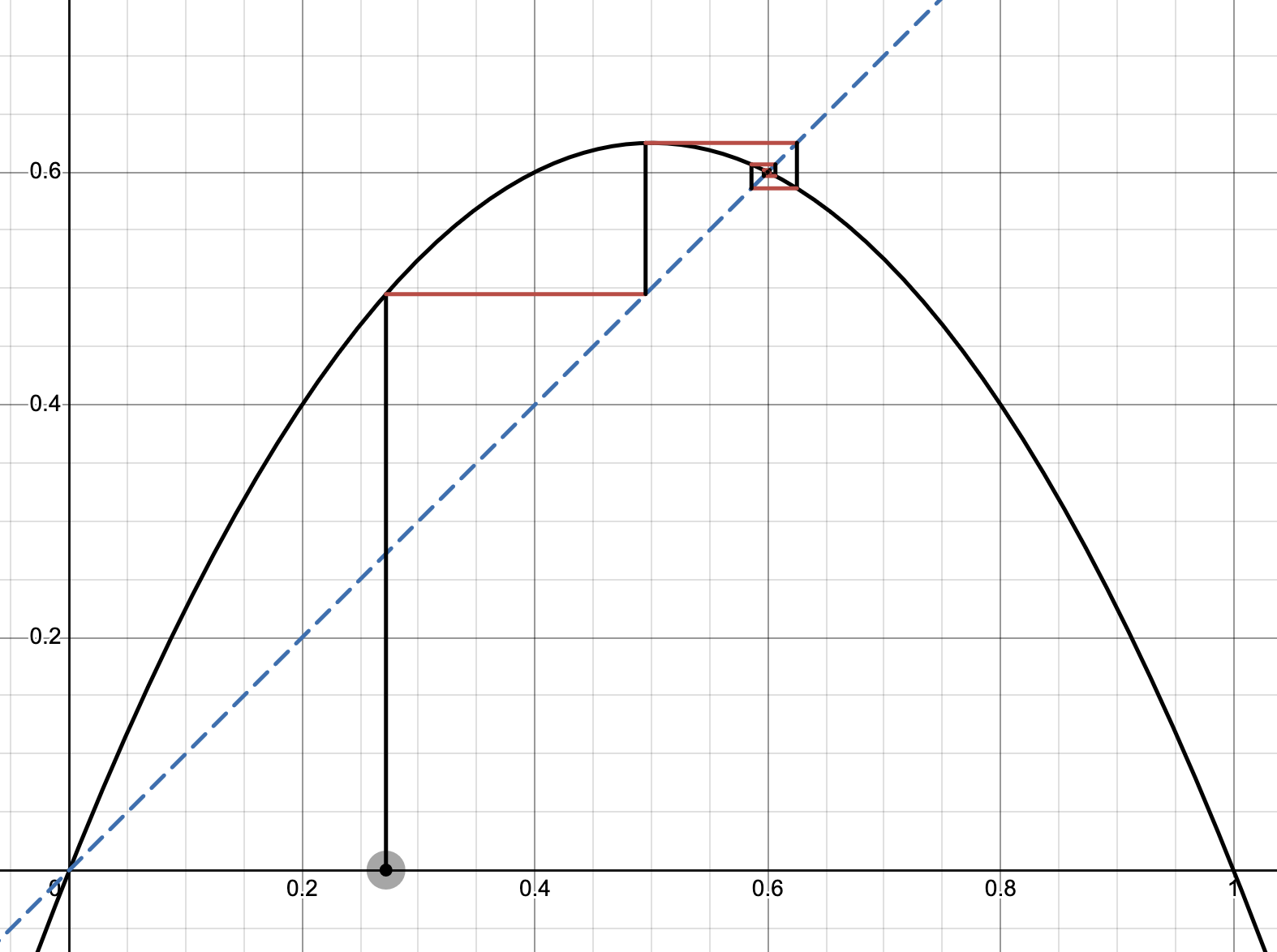 most bounded orbits converge to . once near the fixed point, , so:
