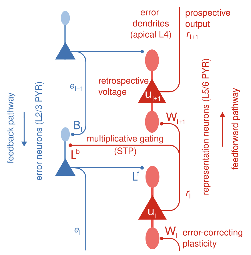 This figure is a theoretical microcircuit from paper ellenbergerBackpropagationSpaceTime2025b (Ellenberger et al., 2025)