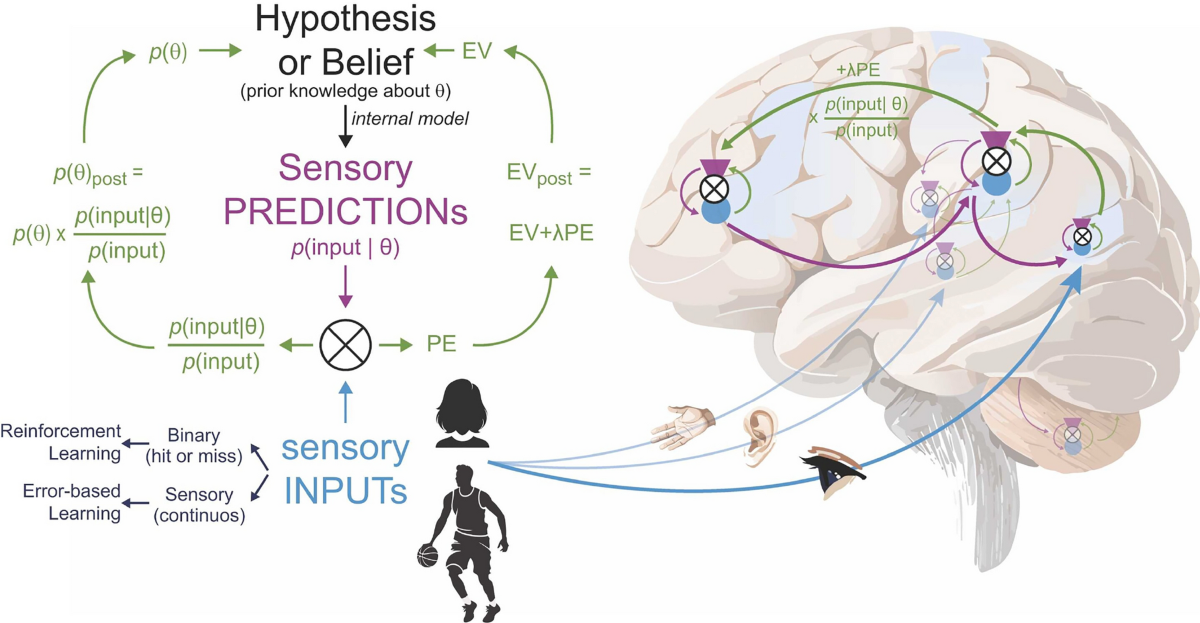 The Bayesian Brain is a neuroscience theory suggesting the brain acts as a prediction machine, using Bayesian Inference to constantly update internal probabilistic models of the world by balancing prior knowledge with incoming sensory evidence. It minimizes “prediction errors” (differences between what it expects and what it senses) to learn and adapt, explaining perception, action, and even phenomena like placebo as optimal statistical processing under uncertainty.