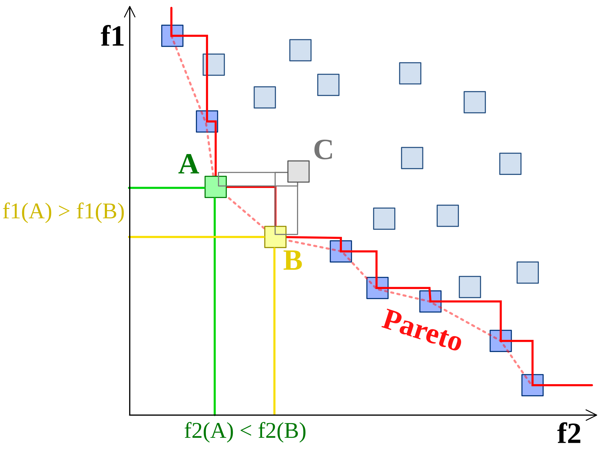 - objective functions are said to be conflicting, solution called nondominated