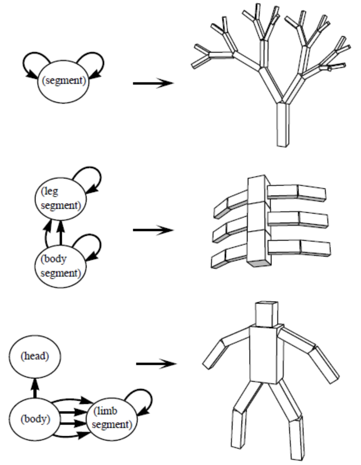 Evolve small CPPNs alone, then evolve the fractal-ish collection of small CPPNs as one robot. Dual evolution objective; good alone and good together.