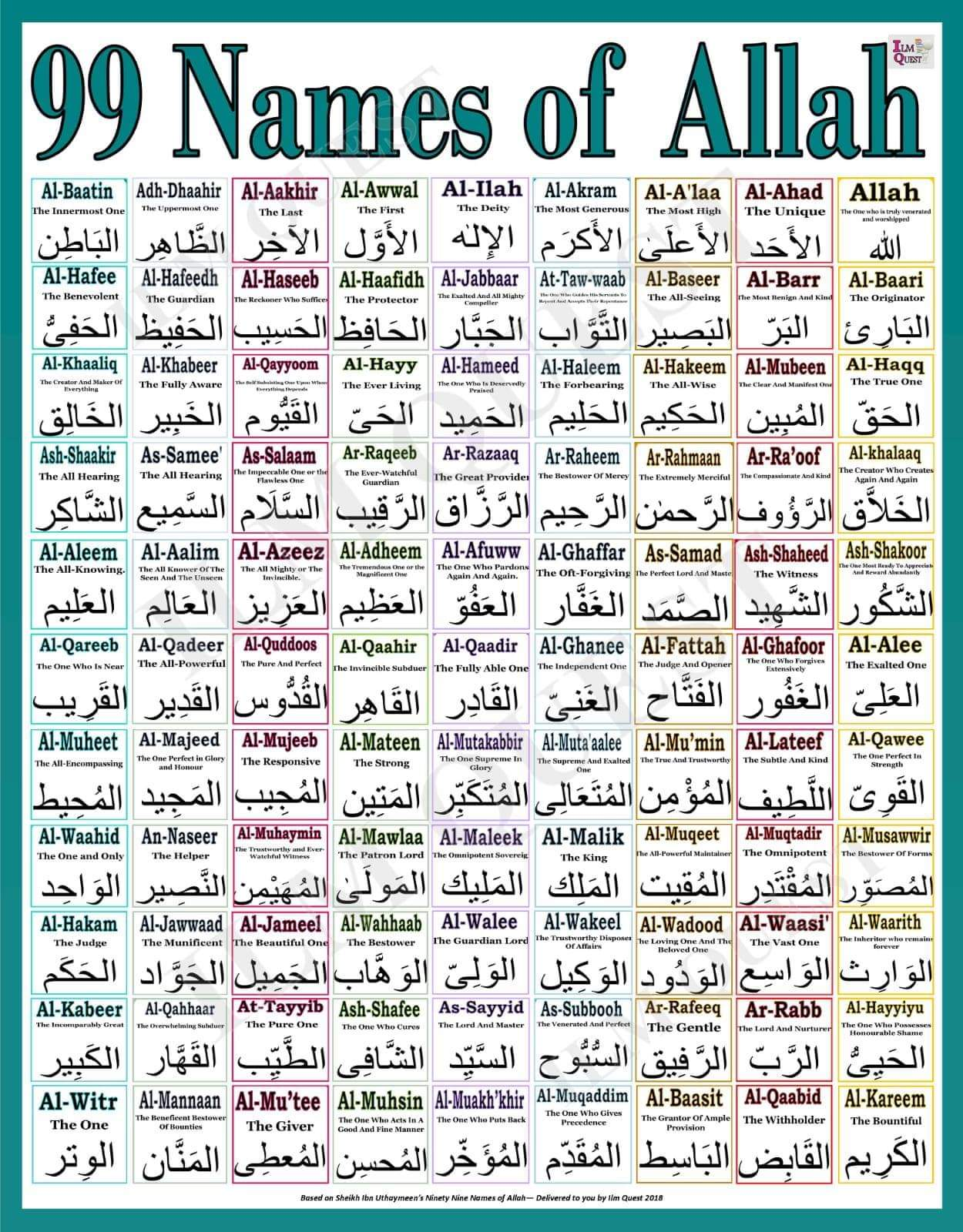 Defined as “God” in Islam. It is important to note that Allah in this case can either be interpreted as being neither male or female, or as including both. “Formless, genderless, all powerful, etc” Beyond “Allah”, God also has 99 other names.